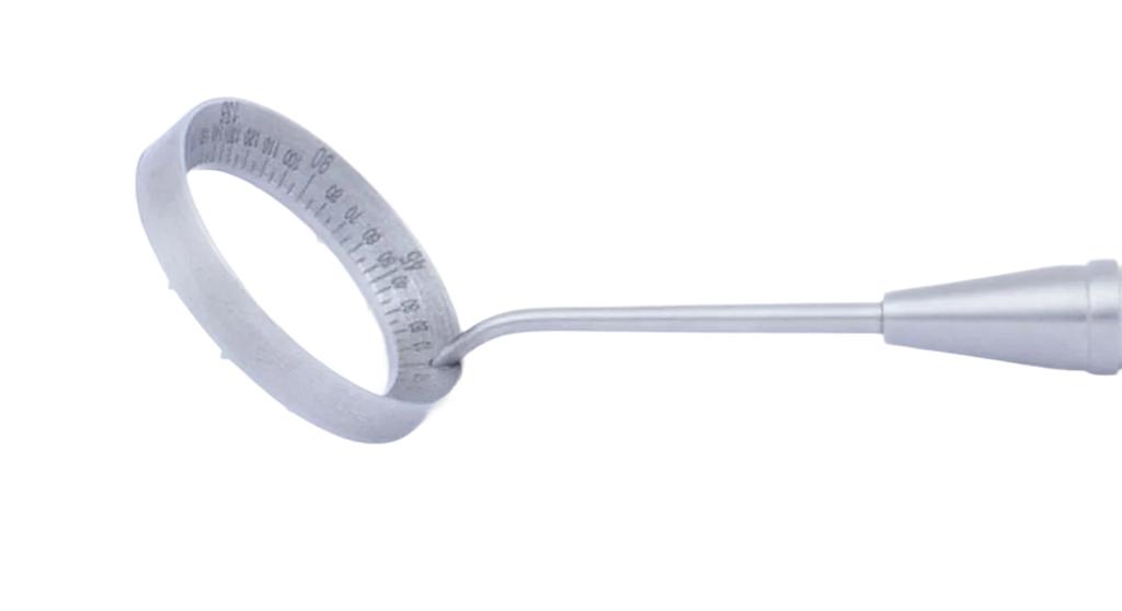 Precision beveled degree gauge featuring teeth for secure measurements. Ideal for ophthalmic surgery and instrument calibration with enhanced accuracy.