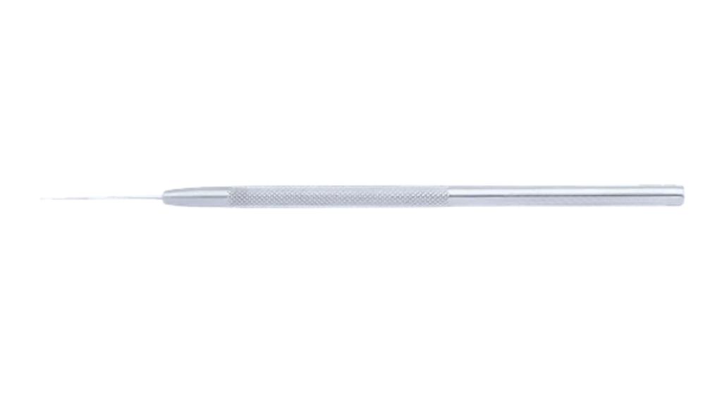 Straight Fenzl hook, model 45-298. Designed for precise and controlled iris retraction during cataract surgery and other ophthalmic procedures.
